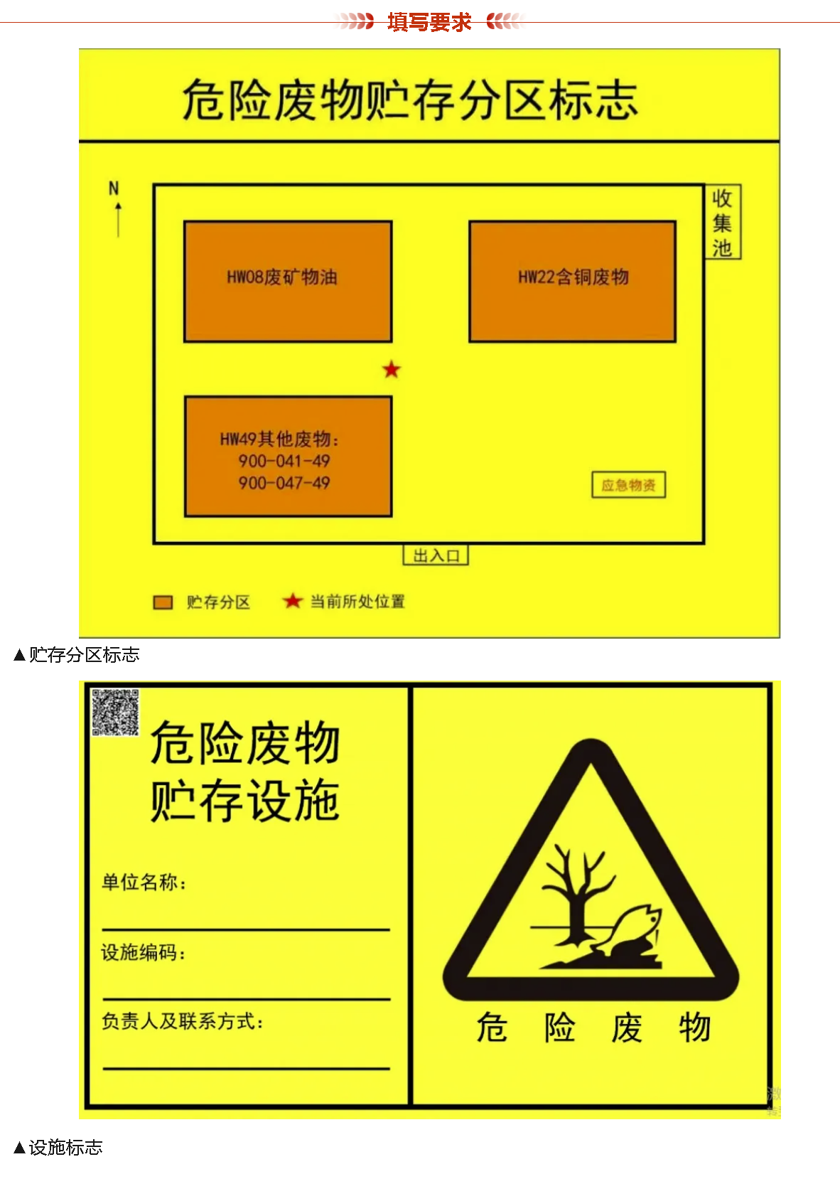 贮存、利用、处置设施标志设置在贮存、利用、处置危险废物的设施、场所,用于引起人们对危险废物贮存、利用、处置活动的注意,以避免潜在环境危害的警告性区域信息标志。